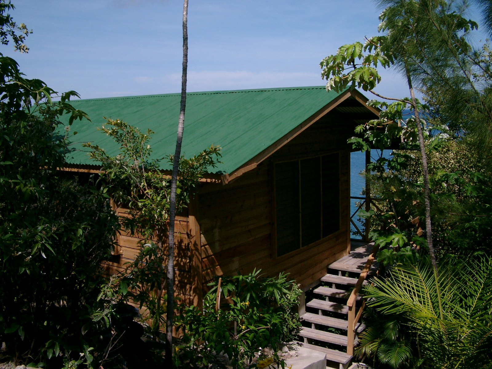 Each unit have private bathrooms with showers and outside decks. Fresh sea breezes and forest shade provide natural air conditioning and a clear cascading water fall provides the cabanas with the sweetest crystal clear drinking water you have ever tasted.